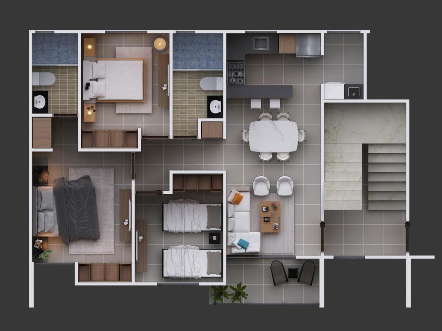 2 habitaciones secundarias con baño común