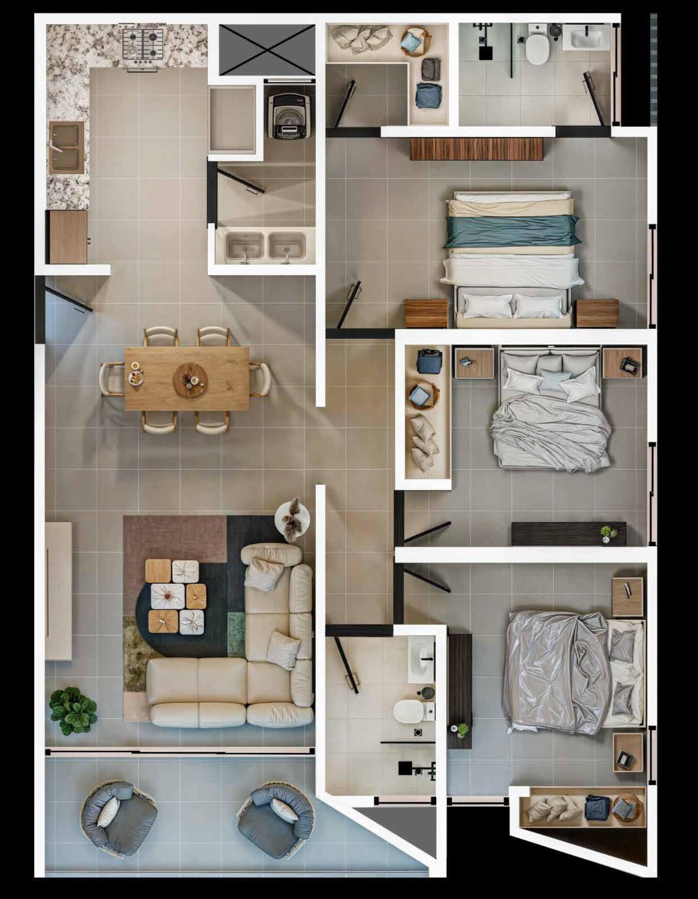 3 habitaciones